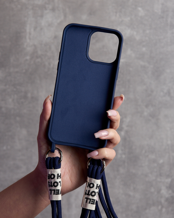 Силіконовий чохол з довгим ремінцем Cord для iPhone 15 Pro, темно-синій